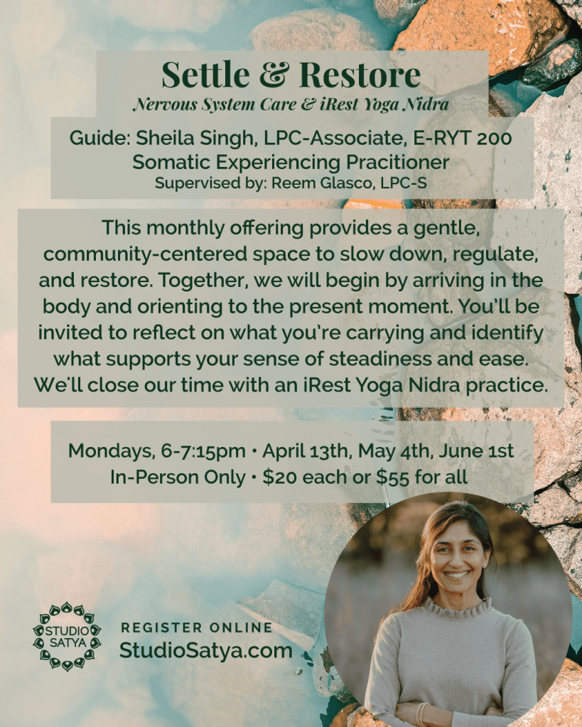 Registration page: https://www.studiosatya.com/special-offerings/settle-restore